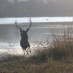 Jade shouts “Leopard”. We stop the car and switch off. The cat is majestically walking on the road. It comes closer, does potty and start moving towards us. We are all excited and hoping for a life time chance of the cat coming and sitting on the Scorpio! He comes less than fifteen feet from the vehicle. We don’t know what happened and suddenly turns left and vanish into bushes. Seeing the spotted cat in all glory is something we had not bargained for!