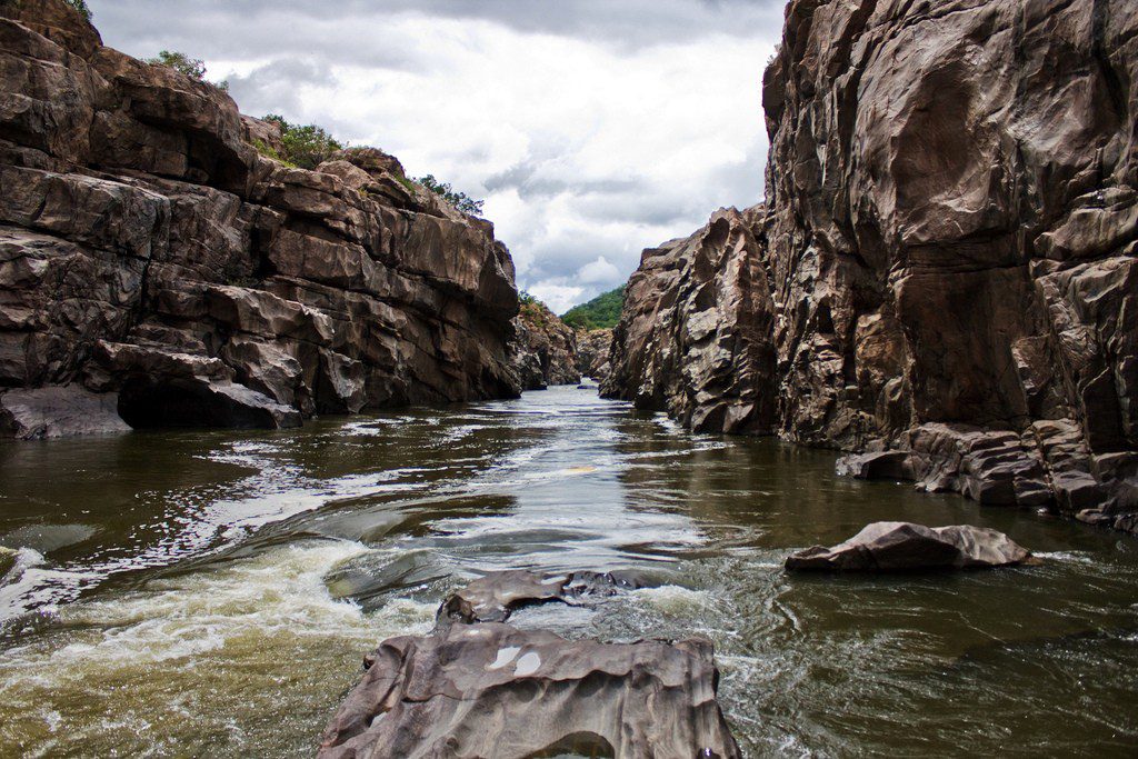 Mekedatu (pronounced maykaydhaatu) means “Goat’s leap” in Kannada. Mekedatu is also known as “Sangama” as it is the confluence of