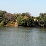 We leave Manik talao (lake) even as many are still glued to “Lightning”. It was a right decision. Hansraj tells Tikaram to go straight to Rajbagh talao. The news had spread about sighting of another tiger on its banks. We did not want to miss the chance of seeing another big cat in all its glory! Tikaram drive fast and we reach the bank of the lake. We could see few Gypsies already parked on the bank and waiting for the sight of the tiger. We too wait for sometime. That is when the intelligence of Hansraj work. He asks Tikaram to start the Gypsy and drive out of the crowd. We leave the crowd and drive a kilometre ahead and wait. Ours is the first vehicle to be positioned at a vantage point. Hansraj and Anurag – Tigerwalah – are firm that the big cat will eventually emerge out of the grass and walk along the bank and enter the road.